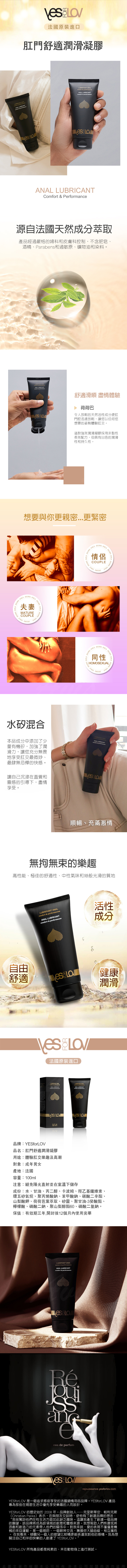 品名:YESforLOV|肛門舒適潤滑凝膠 100ml