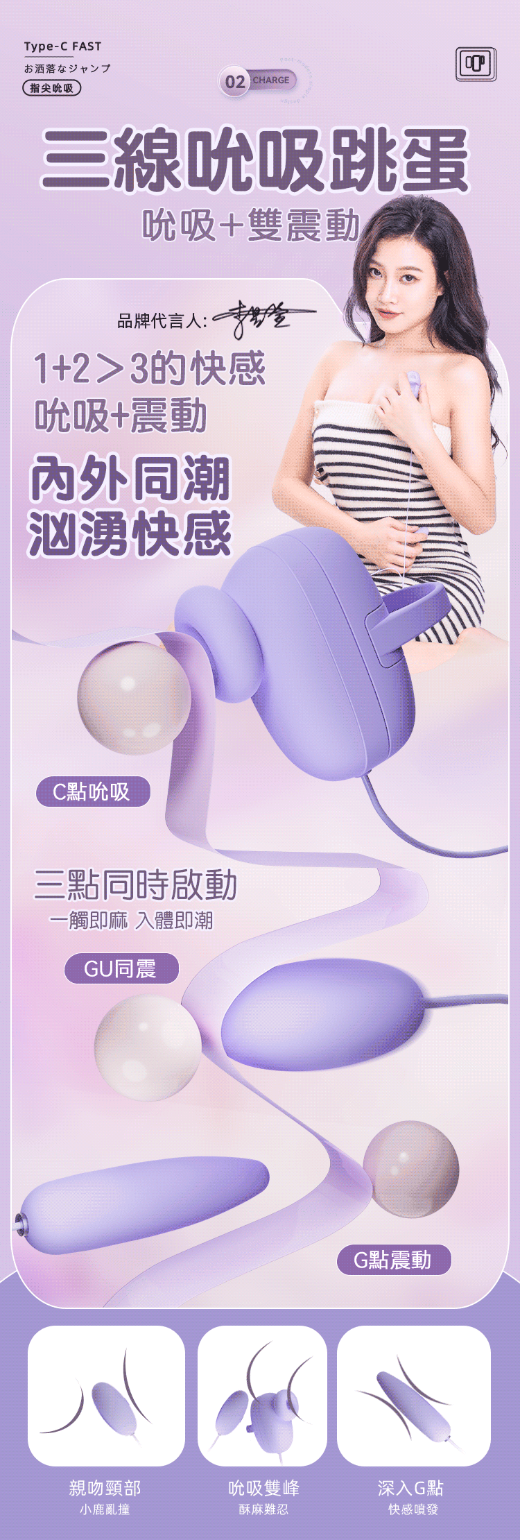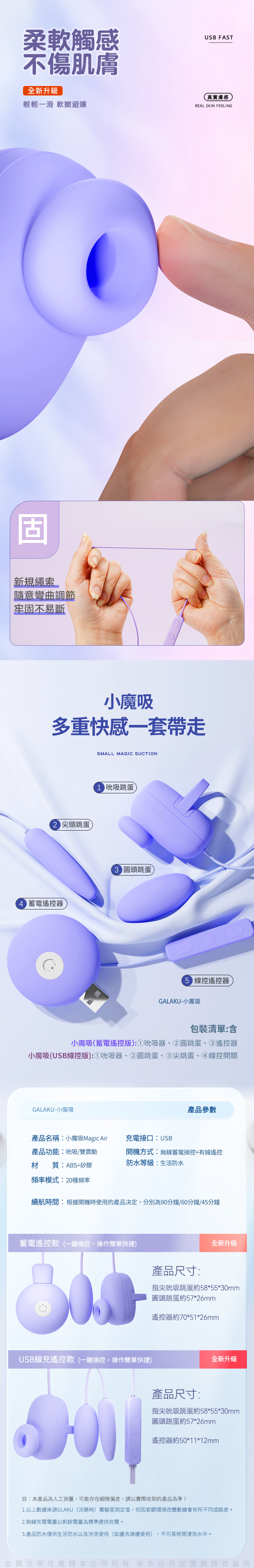 產品名稱:GALAKU|小魔吸|吸吮震動跳蛋 USB直插款 紫