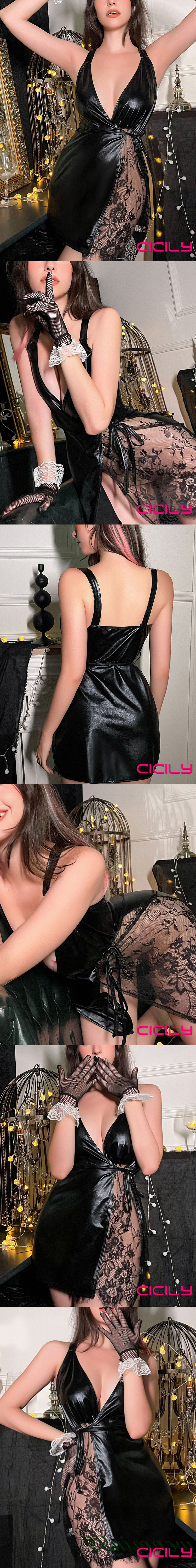 CICILY|情慾縛情|漆皮低胸蕾絲緊身包臀裙