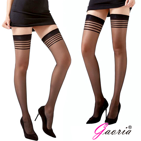 商品名稱:Gaoria|女士透膚膝上|條紋大腿襪