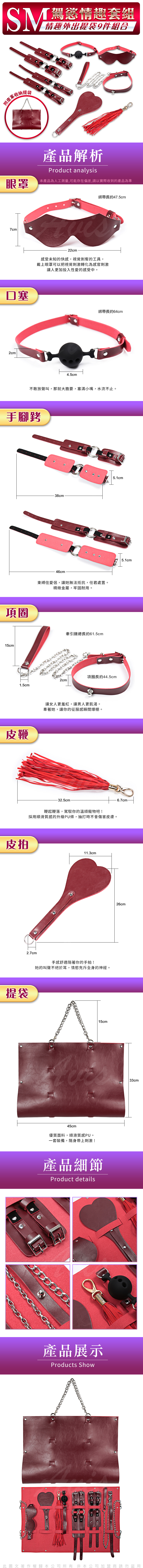 .商品名稱:SM情趣9件組+外出收納包 紅
