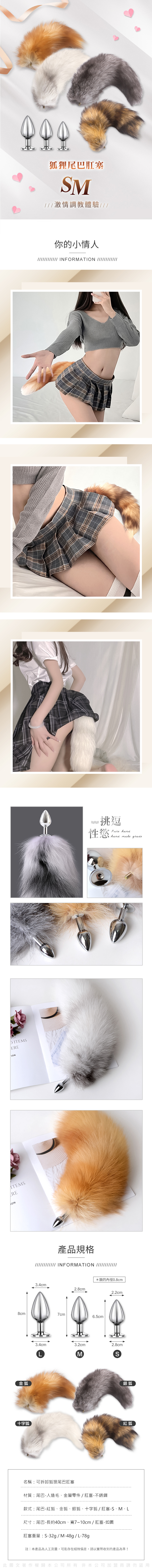 - 靈活搭配:尾巴與肛塞為**獨立販售**,可自由搭配或單獨使用