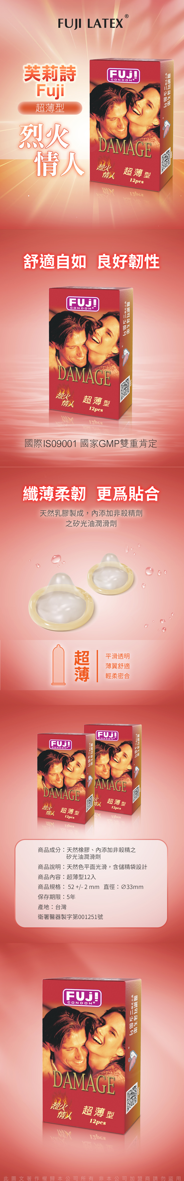 商品名稱:FujiCondom芙莉詩|烈火情人 衛生套 保險套 12