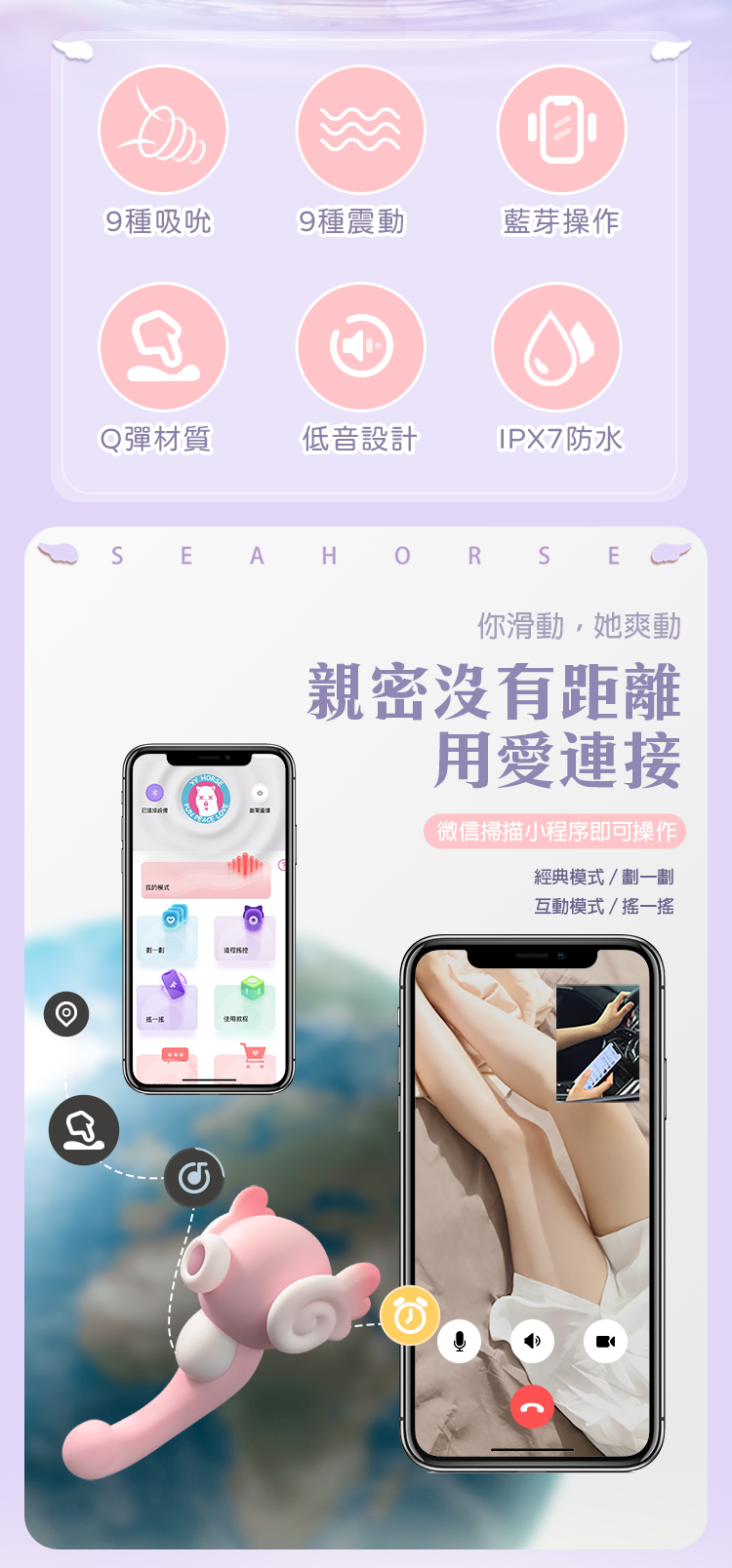 商品名稱 可愛小海馬|舔吸震動棒|粉色 智能版