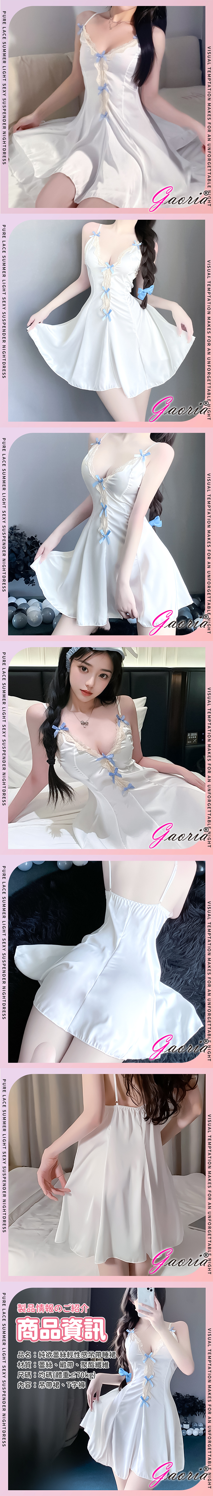 品名:Gaoria|純欲蕾絲 夏日輕性感吊帶睡裙