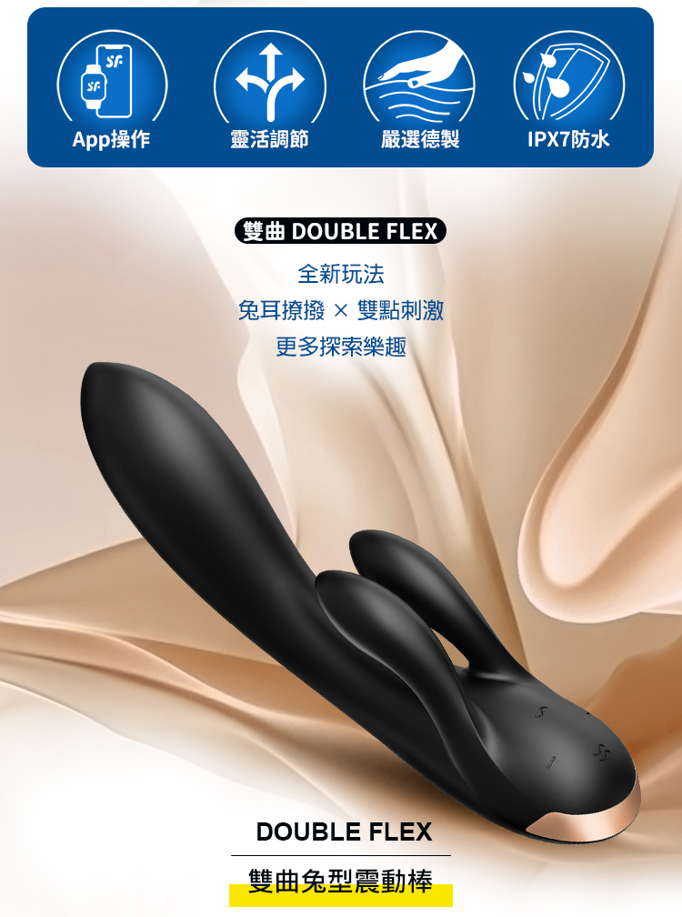 品名:Satisfyer|Double Flex|雙曲兔型震動按摩棒 黑