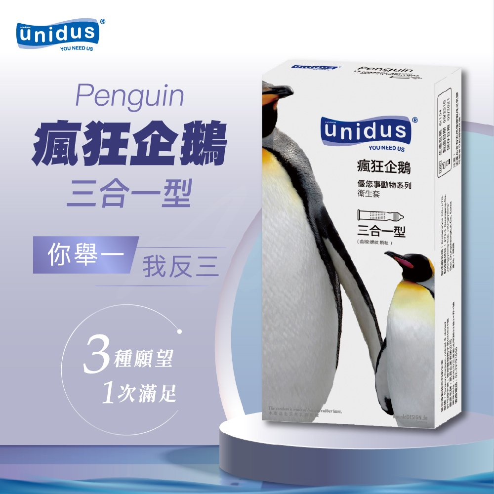 unidus優您事 動物系列保險套-瘋狂企鵝-三合...